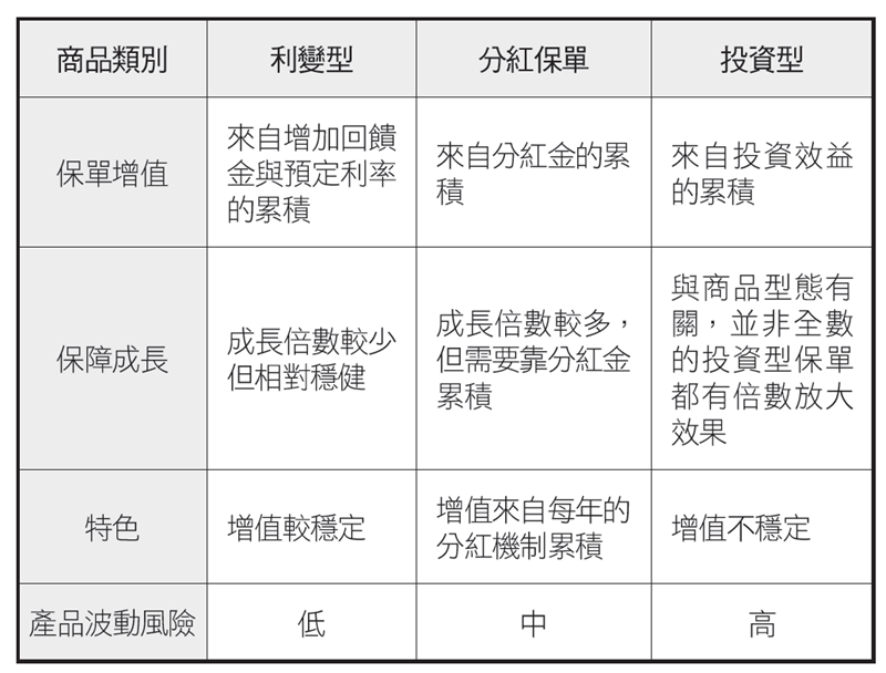 新光人壽建議,選擇具備「保障+資產遞增+傳承機制」特色的保單,作為財富傳承的首選,其中,傳承類保單訴求保障倍數的放大,市場上以利率變動型保單與分紅保單為主,投資型保單則因為投資標的的不同,風險程度也有所區別,年輕時可承受較大風險及波動度,投資標的可偏重股票型基金,若投資屬性相對保守,則可選擇債券型基金,保戶可以評估自己的風險承受能力後,選擇最適合自己的保單。